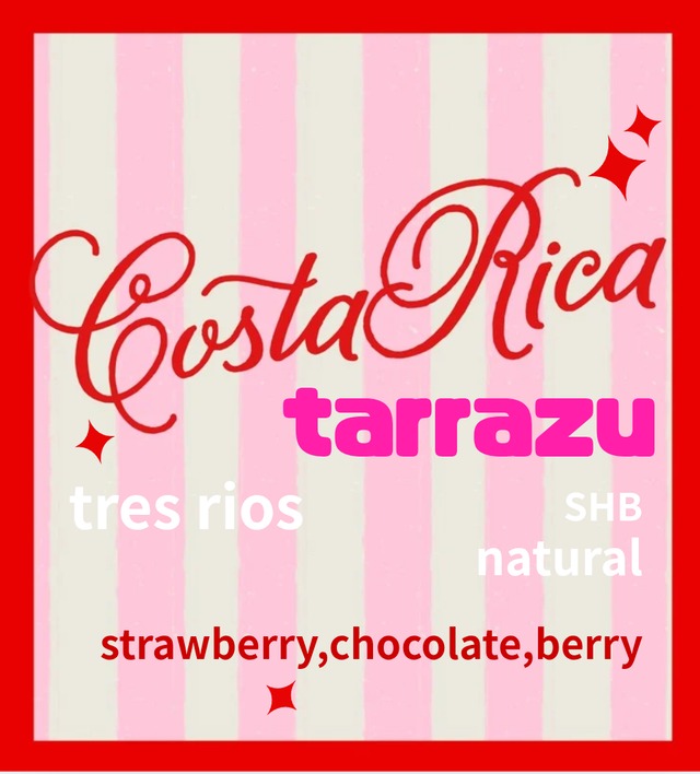 \\ NEW CROP // \\ストロベリーの風味が良いアクセントの甘味際立つ、王道のナチュラル // \\ コスタリカ タラス スカーレット マコー ナチュラル SHB // ❀❀❀❀❀ フレーバーノート: strawberry, chocolate, berry 酸味と甘みのバランスのとれている 中煎り〜少しの焙煎です。 ❀❀❀❀❀ 以下↓引用記事です↓ 【世界をリードする スペシャルティコーヒー生産国】 「中米のスイス」と呼ばれるコスタリカ。南北アメリカを結ぶ地峡地帯に位置するコスタリカは東西を太平洋とカリブ海に囲まれ、国土の中心に山脈が連なる小さな国です。軍隊を持たない平和主義の国としても知られ、「地球幸福度指数」第一位に選ばれたこともあります。 「コスタリカ(Costa Rica)」とはスペイン語で「富める海岸」の意味で、周りを海に囲まれた環境で生物多様性にも恵まれています。 面積は僅か、日本の四国と九州を合わせた程度ですが、地球上の全動植物の約5%が生息するほど豊かな自然環境があります。 生物多様性もさることながら、先進的なプロセスで世界のスペシャルティコーヒーをリードする存在です。 ❀❀❀❀❀ 【コスタリカのマイクロミル】 コーヒー栽培の歴史は古く、18世紀後半ごろに持ち込まれたといわれています。19世紀後半になると、コーヒーは「黄金の豆」と呼ばれるほど国の主要な輸出産品となり、コスタリカの発展を支えてきました。 近年では、スペシャルティコーヒーの潮流の中で、さらに独自性を発揮すべく、ハニープロセスが考案されたり、トレーサビリティの向上を目指した「マイクロミル革命」などが起こったりと、中米の中でも注目を浴びる生産地となっています。従来の流通では、農家が集荷業者にコーヒーチェリーを売るのが一般的で、品質に応じた取引ではありませんでした。 そんな状況の中で誕生したのが「マイクロミル」です。生産者自身が加工施設を作り、栽培から加工までを自ら行うことで品質を高めようとする動きが高まっています。 ❀❀❀❀❀ 【タラスの高地で育まれたナチュラル】 コスタリカの中でも高標高地帯に位置するタラスは、高品質なコーヒーの一大産地として知られています。今回ご紹介するコーヒーは、コスタリカ国内で最大手の輸出業者である Café Capris社 が生産指導と集荷を行い、品質基準をクリアした原料を厳選し、仕上げられました。 Café Caprisは、コスタリカ全土8つの原産地すべてから生豆を取り扱える体制を整え、マイクロロットからコマーシャルロットまで幅広く対応する輸出業者です。環境に配慮した農法の推進や、生産者さんの生活向上を重視した取引を通じて、持続可能なコーヒー産業の実現にも力を注いでいます。 中米では気候的に難しいとされるナチュラル精製にも取り組み、日中の強い日差しと夜間の冷え込みという自然条件を活かしながら、アフリカンベッド(乾燥棚)を用いたゆっくりと均一な乾燥を実現しています。フルーティーな香りと、奥行きのある甘みをぜひお楽しみください。 ❀❀❀❀❀ オータムブレンド第①弾のブレンドに使っているコスタリカのナチュラルです。 とても好きだったので、 この秋冬にたっぷりと楽しみたいと追加購入したので、シングルでも販売します♡ コスタリカのナチュラル、 ほんとにあまり見かけないのですよ♬ 在庫があるうちにお試しください♬ ❀❀❀❀❀ ❀❀❀❀